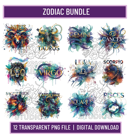 Zodiac PNG Bundle, 12 Horoscope Clipart Designs